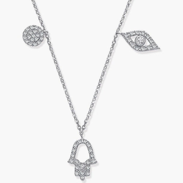 Introducing the 9ct White Gold Diamond Hasma, Evil Eye & Circle of Life Pendant with Adjustable White Gold Necklace!